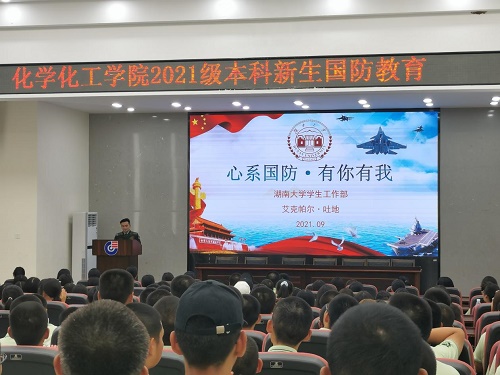 学生工作部少数民族学生专职辅导员艾克帕尔·吐地老师主讲,会上老师为大家普及了国防的相关知识,详细地介绍了我校征兵条件和相关政策,号召大家积极参军。