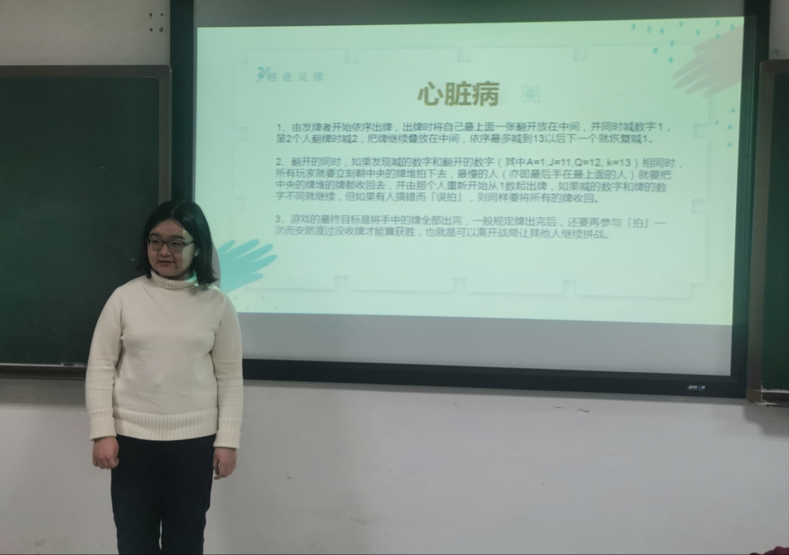 会议伊始,主持人王溪阅带领同学们参与了小游戏“你画我猜”。六人一组,第一名同学看词语,根据词语在纸上绘制出描述这个词语的图画。第二名同学根据第一名同学所画内容,猜测所表达的词汇,然后再将这个词画出来。一直传递至最后一名同学,由该同学猜测画面所表达的词汇。答对一题积一分,积分高的队伍获胜。游戏过程中,同学们积极参与,热情高涨,极大程度地提高了同学们的团队协作能力和默契程度,同时也提升了班级凝聚力。无论是输是赢,积极参与活动能够帮助他们丰富课余生活,拉进彼此的距离,增进同学之间的友情。