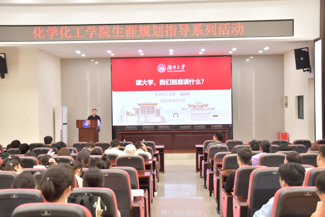 于2022年3月11日晚在学院D栋报告厅开展大学生涯规划系列活动第二场。学院党委书记王双印出席活动并讲话,党委副书记潘刚峰为同学们做“读大学,我们到底读什么”专题讲座,活动由本科2021级辅导员张子政老师主持。