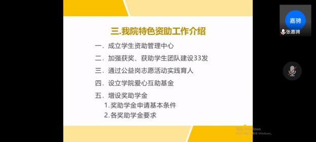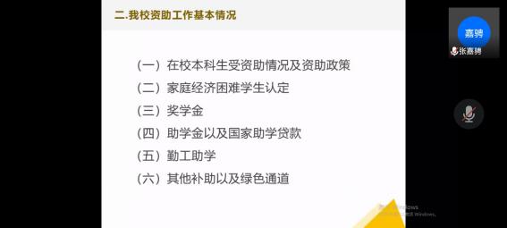 首先,张嘉骋同学作为班级爱心使者从资助工作背景及本专科生教育阶段性政策、我校资助工作基本情况、色情导航