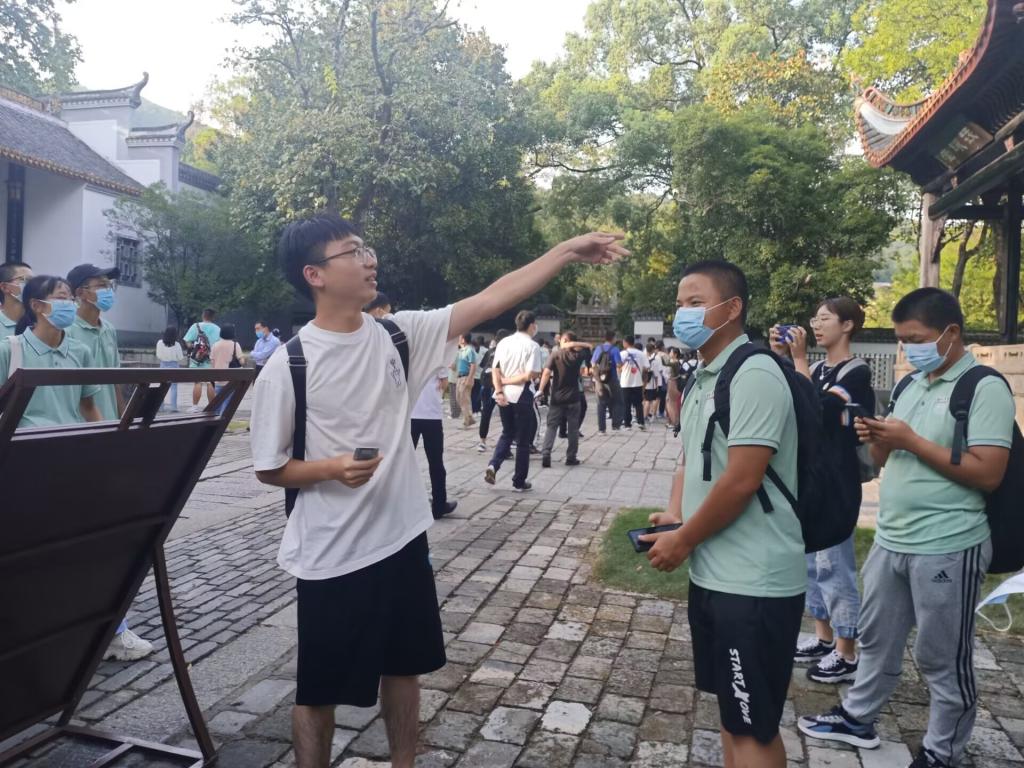 同学们在林初楷学长的讲解下重温朱张会讲的庄重,感悟书院文化底蕴的深厚,感受千年学府的悠久历史以及百年以来的发展。在岳麓书院大门前的对联“惟楚有才,于斯为盛”下同学们体悟到历史的厚重以及穿越百年的殷切希望;于乾隆提写的“道南正脉”下感悟岳麓书院学规的教诲,学规先交做人再言治学可见湖大的为学精神;于“实事求是”的牌匾下感受到了对青年学子从事实出发、追求真理、脚踏实地、不断前行的勉励。通过此次参观,同学们在大学伊始感受到了色情导航