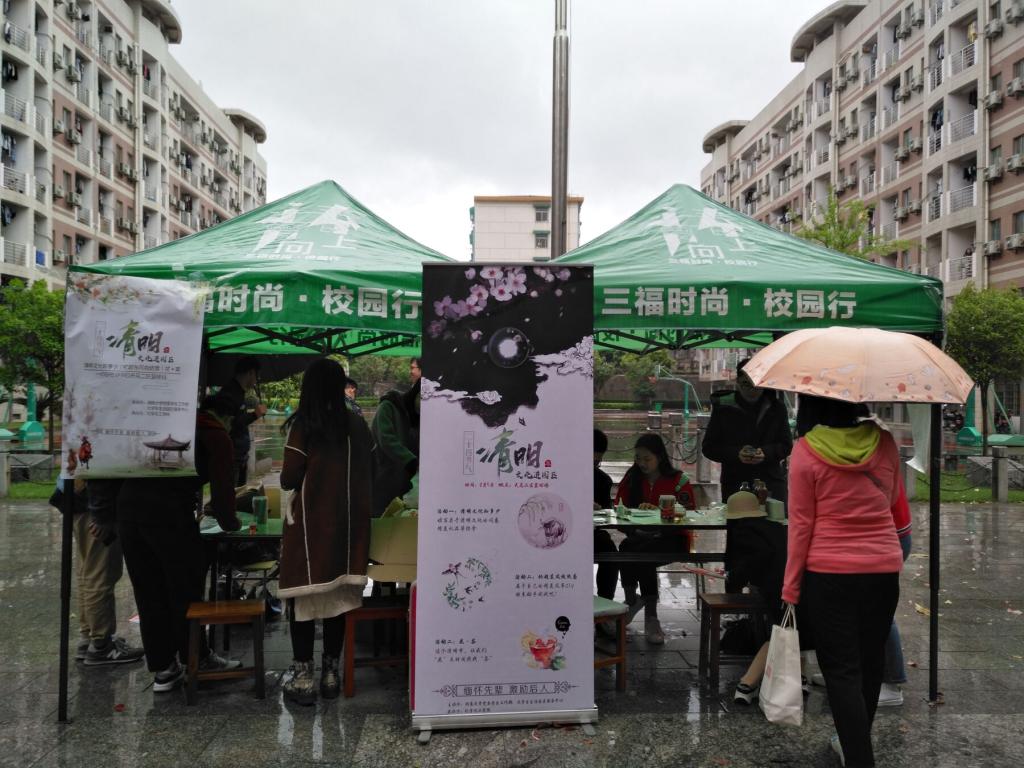 天马园区的活动以“弘扬中华传统,传承清明文化”为主题,分为有奖问卷活动和“花·茶”团扇DIY制作两部分;德智园区以“和风化雨,寄我思慕”为主题的活动则用KT板征集了同学们的虔诚的心语。