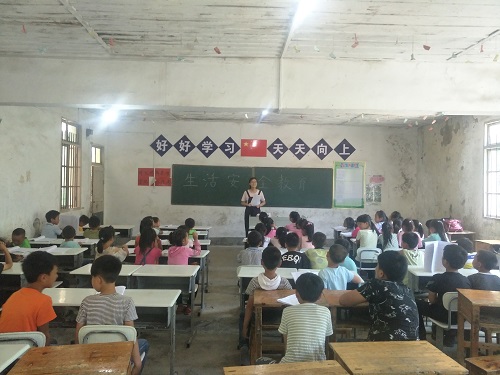 “情系瑶乡,萤火助梦”教育扶贫三下乡实践团队在茅坳完全小学的日程进入了第二天。除开常规的国学经典诵读环节,今日开设的安全课与手工课也反响热烈。