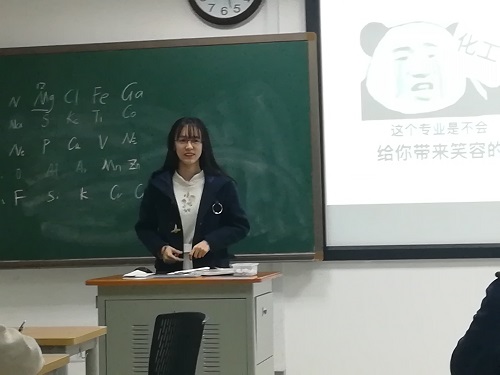 班上的学霸仇傲乾同学首先站起来发言。他说道:“自己是被调剂到这个专业的,一开始也觉得很郁闷,但是随着之后慢慢的学习,渐渐的觉得自己是到对了专业。化工这个专业,涉及的知识面广,有许多实践活动,这些都是自己想要的。自己无悔入化工。”