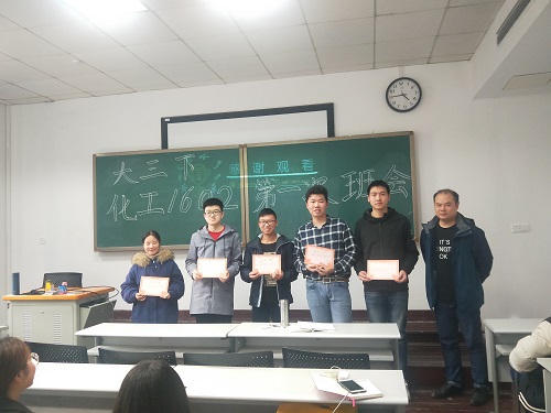 成绩分析过后,班长王子恒对上学期工作优秀的组织委员杨永辉,心理委员彭裕和学习委员刘永炜,蒋莉进行了表彰。