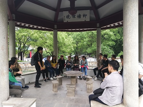 进入岳麓书院,大家沿着旁边的蜿蜒小路,穿过一片柳树林,到达了风雩亭并围坐在亭子的四周。待所有同学入座后,团支书站在亭子中间开始了今日活动的小讲话。一开始团支书总结了最近一段时间应化1601班经历的一些活动以及各种繁忙的考试,表明了这次活动的目的——放松心情,迎接更加充实的生活。团支书还提到大家目前的各种计划如考研,保研,工作等等,希望大家能够保持初心,不畏艰难,勇往直前。接着团支书带领大家正式开始了今日的“小旅行”。