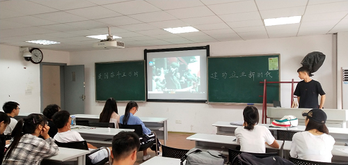 会议伊始,班长刘思铭与同学们一起观看了开国大典原始影像,以此拉开会议的序幕。观看结束后,刘思铭同学发表了观后感言。他说:“新中国的成立是建立在庞大的群众牺牲上的。作为一名拥有较高思想水平和道德素质的新时代大学生,同学们应该树立正确的价值观念,铭记先烈们的光荣事迹,努力学习先烈们顽强抵抗、殊死搏斗的铁血精神,为祖国的发展贡献自己的力量。”