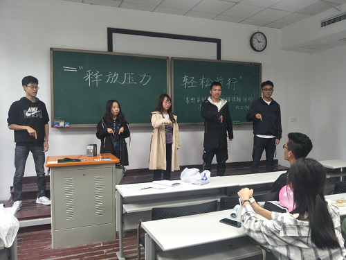 化工1703 班的全体同学在中楼208 进行了以“释放压力,放松前行”为主题的心理团辅活动。