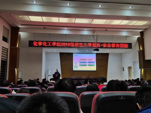 2019级新生入学安全教育讲座在化工院D区报告厅顺利举行。本次教育讲座由桔子洲街道办驻校民警程志向全体同学授课,旨在提升2019级新生的自我安全保护意识,全面掌握安全知识,提高自我保护能力,更好的适应未来四年的大学生活。