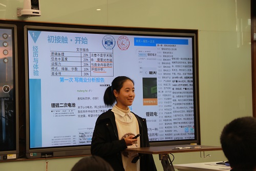 袁知秋同学以自己入学以来的互联网+团队生活和学习经验作了学术展示报告。