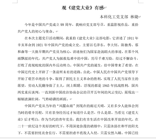 本科化工党支部:“品读经典—中国共产党建党99周年”线上主题党日活动