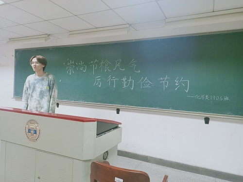 为了响应“光盘行动”的中央号召和引导同学们树立勤俭节约意识,养成勤俭节约的良好习惯,化学类1906班的同学们于11月19日在综合楼406教室召开了以“崇尚节粮风气 厉行勤俭节约”为主题的班会。