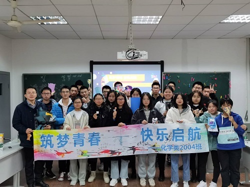发展现状,化学专业的发展前景及职业生涯规划提出了自己的见解,并结合自己的职业生涯为当今大学生筑梦逐梦给出了建议。他着重强调化学专业并非就科研一条路可走,同学们要创新思维开辟新路径面向全行业多角度的发展,打破传统思维局限。最后他勉励同学要抓住时机抓住当下夯实基础,并提出了学习新阶段的更高更严格的要求。班会最后,同学们为近期生日的同学举办了生日派对。在大家热烈的掌声中,同学刘楚航为大家献上一曲青春的礼赞。一片欢声笑语中,本次班会也走到了终点。
