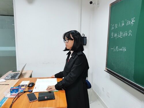 化学类2006班于研究生院楼顺利开展“应征入伍”主题班会。此次班会由团支书蔡明彤主持,化学类2006班全体参加。