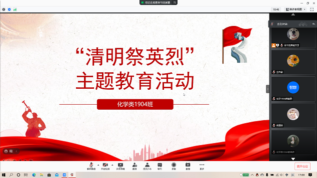 化学1904:“清明祭英烈”线上主题教育活动顺利召开