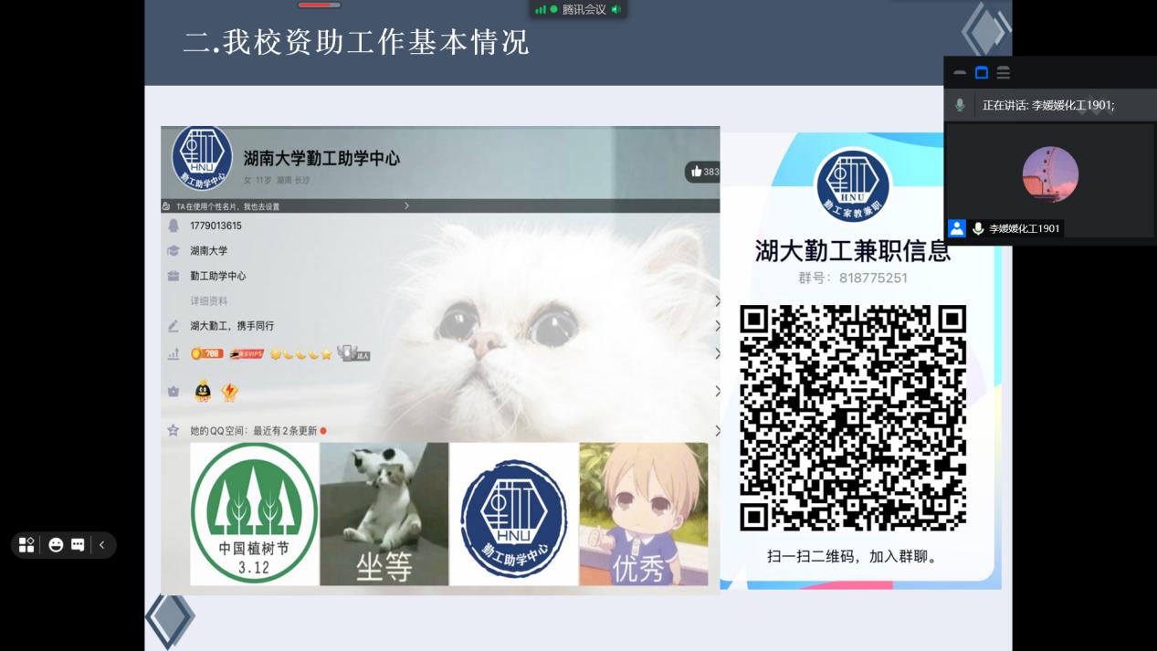 为防控疫情且更配合同学们的时间,此次班会在腾讯会议线上开展。此次宣传由爱心使者李媛媛主讲。