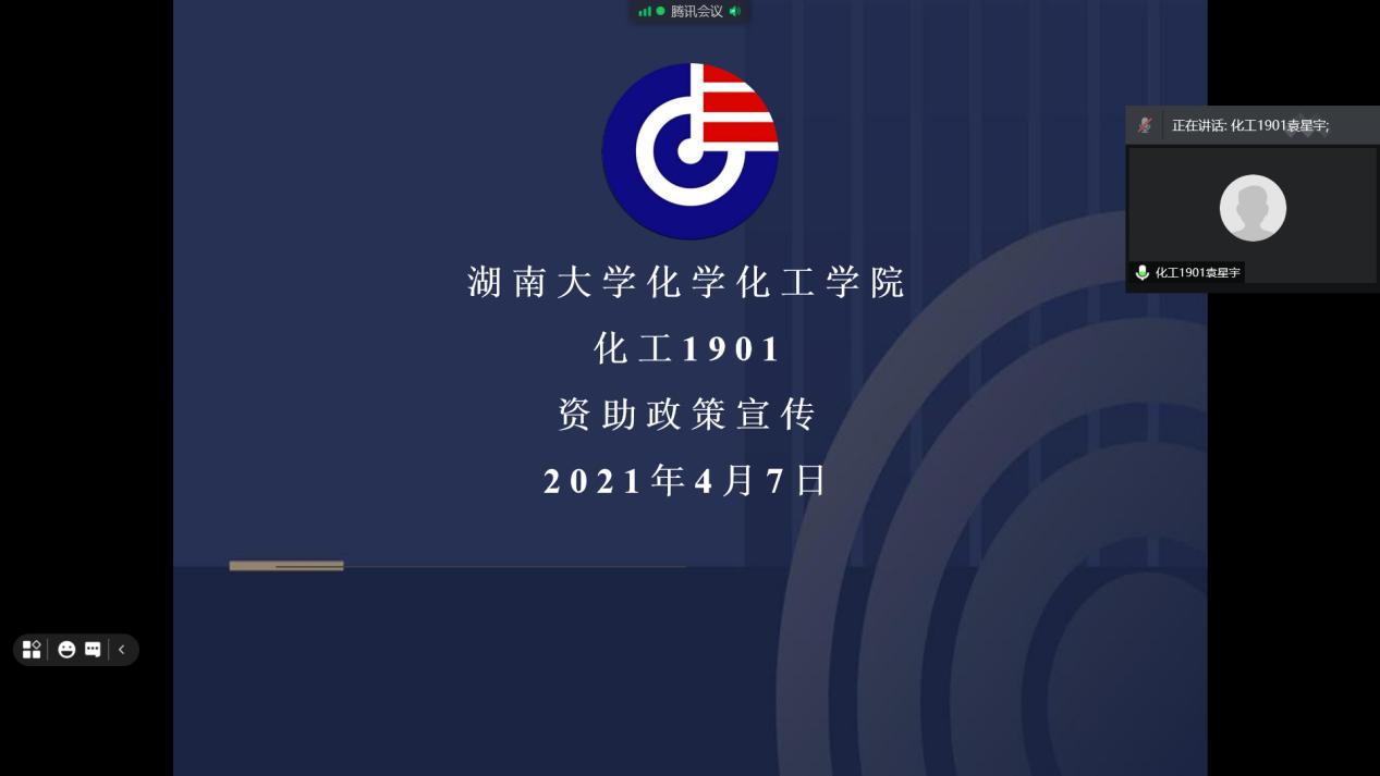 化工1901班在2021年4月7日晚9:30-10:20开展资助政策宣传班会。