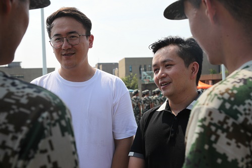 各班新生班主任都来到了现场,和辅导员老师级本班学生助理进行了亲切的交谈,了解了训练计划,关心了新生们在的身体情况并认真观看了同学们的训练成果,同时也对学生助理进行了关心慰问,表示有任何需要帮助的地方都可以及时联系班主任。同时来自学校党委学生工作部的少数民族专职辅导员阿尔曼·亚森江老师和艾克帕尔·吐地老师也特地前来关心慰问了来自新疆的少数民族同学,了解他们的生活和训练情况。