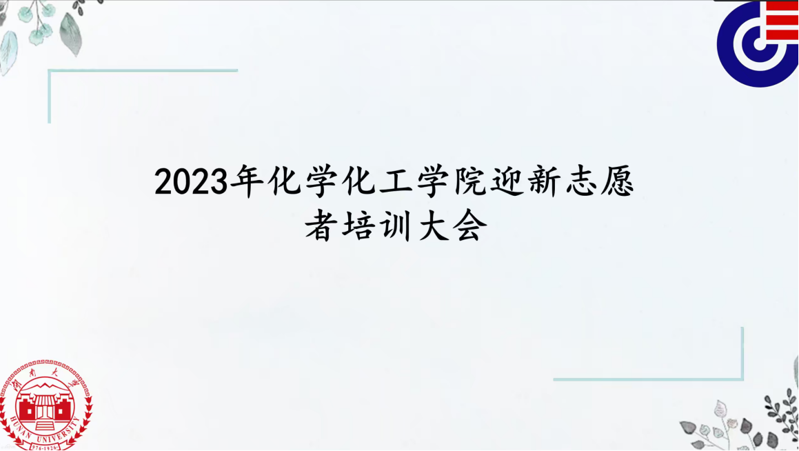 通过腾讯会议开展了新生志愿者线上培训会,旨在让迎新志愿者明确提前的踩点工作及迎新当天的工作安排。本次会议由化工院青志协部长、2023级迎新团队志愿者负责人胡梁榆同学主持。