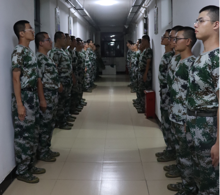 为贯彻“严格要求,作风端正”的军训要求,9月6号晚上我们进行了第一次内务评比。同学们以整齐的军姿迎接教官的到来,武装部部长也是亲自来到了学生宿舍中为同学们的内务做出指导。