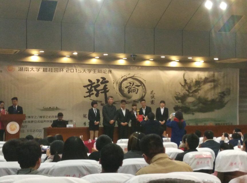 赢得了此次校辩论赛的冠军,反方三辩为本场最佳辩手,正方三辩吴天忍为校辩论赛全程最佳辩手。随即举行了颁奖仪式。