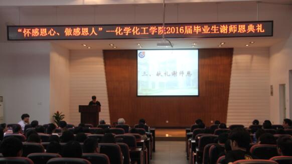 2016届本科毕业生谢师恩典礼在化工院报告厅隆重举行。受邀参加本次典礼的领导老师有中国科学院俞汝勤院士和姚守拙院士,色情导航