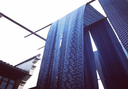 最后一站团队一行人来到江南水乡乌镇,在乌镇,为了让更多的游客了解蓝印花布的制作流程,东西栅的两处染坊都有人在演示印染的操作,同时在乌镇。团队也发现印染技术在不断地改进,印染的图案也与时俱进。在乌镇,有许多游客对蓝印花布感兴趣,在晒布场上有很多游客与正在晾晒的蓝印花布布匹合影。乌镇的市场上有很多蓝印花布的工艺品在出售,销售状况比南通华东轻纺市场上要好很多,这也与乌镇的旅游业发展有很大的关系。