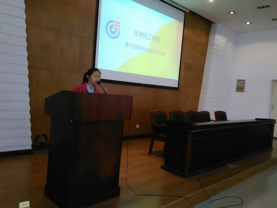 在院报告厅举行了赛前动员大会,出席会议的有分团委书记兼12级辅导员陈晓晖老师、11级辅导员李辰老师、13级辅导员曾芷兰老师和14级辅导员刘世明老师,以及参加运动会的运动员、志愿者和方阵人员。