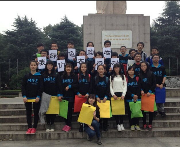在经过了历时一周的精心策划和筹备后,活动所有的流程、物资、道具、人员分组情况都在活动前一天进行了最后的确认和部署。21日中午1点半,化工1301班的全体同学在和煦的阳光下集合于东方红广场进行任务分派,本次活动将同学们每4-5人分为一个小组,每个小组的任务是在岳麓山附近的指定景点范围内寻找到6组游客配合录制宣传绿色购物的小视频,需要游客念出“少用一只塑料袋,少一份污染;少用一只塑料袋,多一份洁净。绿色购物,我们在行动。”的宣传语,录制结束后会将准备好的环保袋作为礼品赠予游客,分配完地点和道具后,各小组在组长的带领下怀着激动的心情奔赴了自己的目的地。