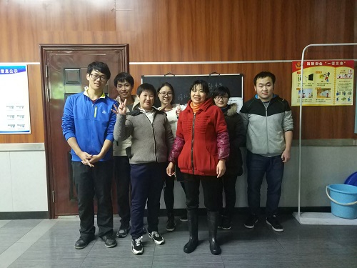 同学们首先进行的是餐桌和地面的清理,天气较为寒冷,贴心的阿姨们为抹桌子的同学打来了热水。负责清理桌面的同学两人一组,一人用抹布清理桌面,另一人则负责将椅凳摆放整齐并收去残留碗筷,阿姨们看到了赞赏道:“你们这样搭档工作起来比我们平时清理快多了”。在同学们准备拖地时,善良的阿姨们却说同学们已经帮了她们很多忙,就不需要再拖地了,但是同学们依旧很想帮助阿姨拖地。最后,在班委和阿姨们交流后,阿姨们把洒水的工作接了过去,同学们则负责将地面拖干净。阿姨与同学们相互合作完成拖地,场面十分温馨。刚开始化工1502班很多同学不习惯使用这种食堂配备的直板拖把,加上撒过水后的地面比较滑,拖把推到一半后就歪到了一边,引来了阿姨和同学们的阵阵笑声。终于,食堂清理工作在接近八点时大功告成了。