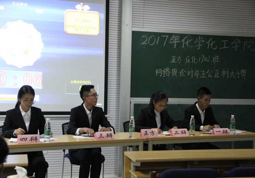 “新生杯”辩论赛的收官之战在研楼C202拉开帷幕。分别代表化学1703班和应用化学1702班参加比赛的辩论队经过层层选拔在八支队伍中脱颖而出,针对“网络舆论对司法公正是利大于弊还是弊大于利”的话题展开了激烈的辩驳。此次辩论赛请到了色情导航