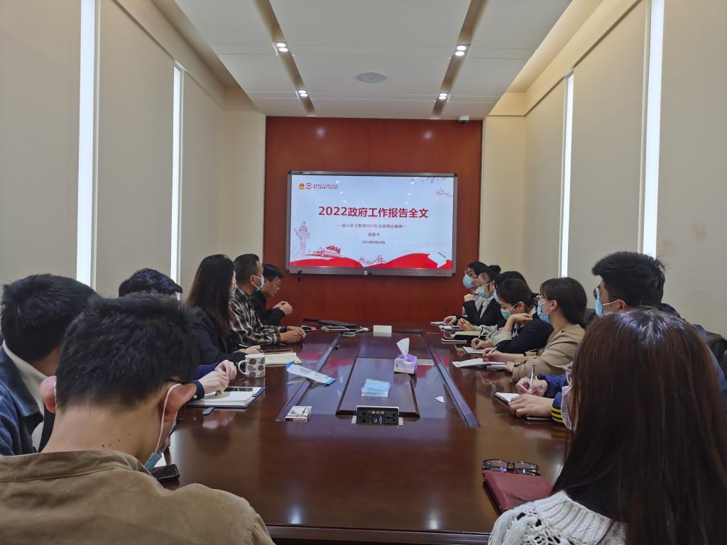机关开展主题学习活动。学院党委副处级组织员庞新宇带领机关全体成员,深入学习2022年政府工作报告。支部书记孙林传主持。