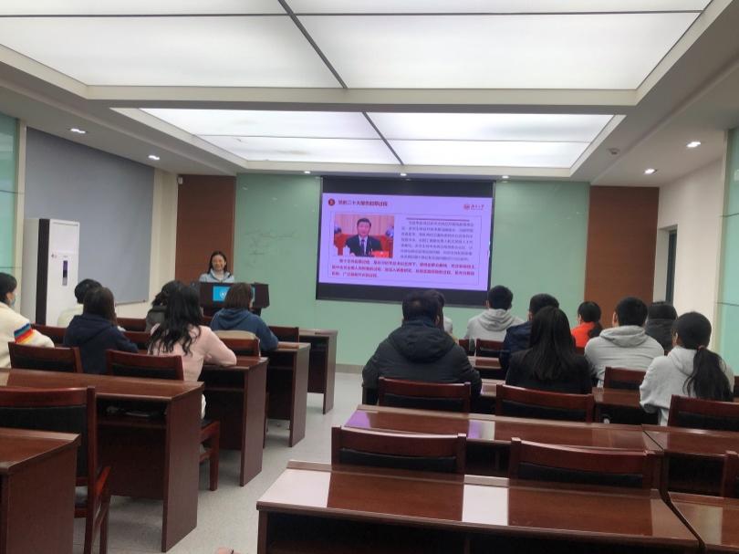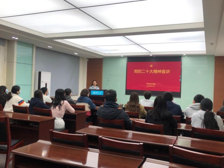 2022年11月26日,色情导航 分析02党支部组织召开“学习二十大,奋勇新征程”主题党日活动,邀请学院党委副书记、纪委书记楚霞老师作党的二十大精神专题宣讲,解读党的二十大会议精神,传递党的二十大声音,支部全体党员参加。