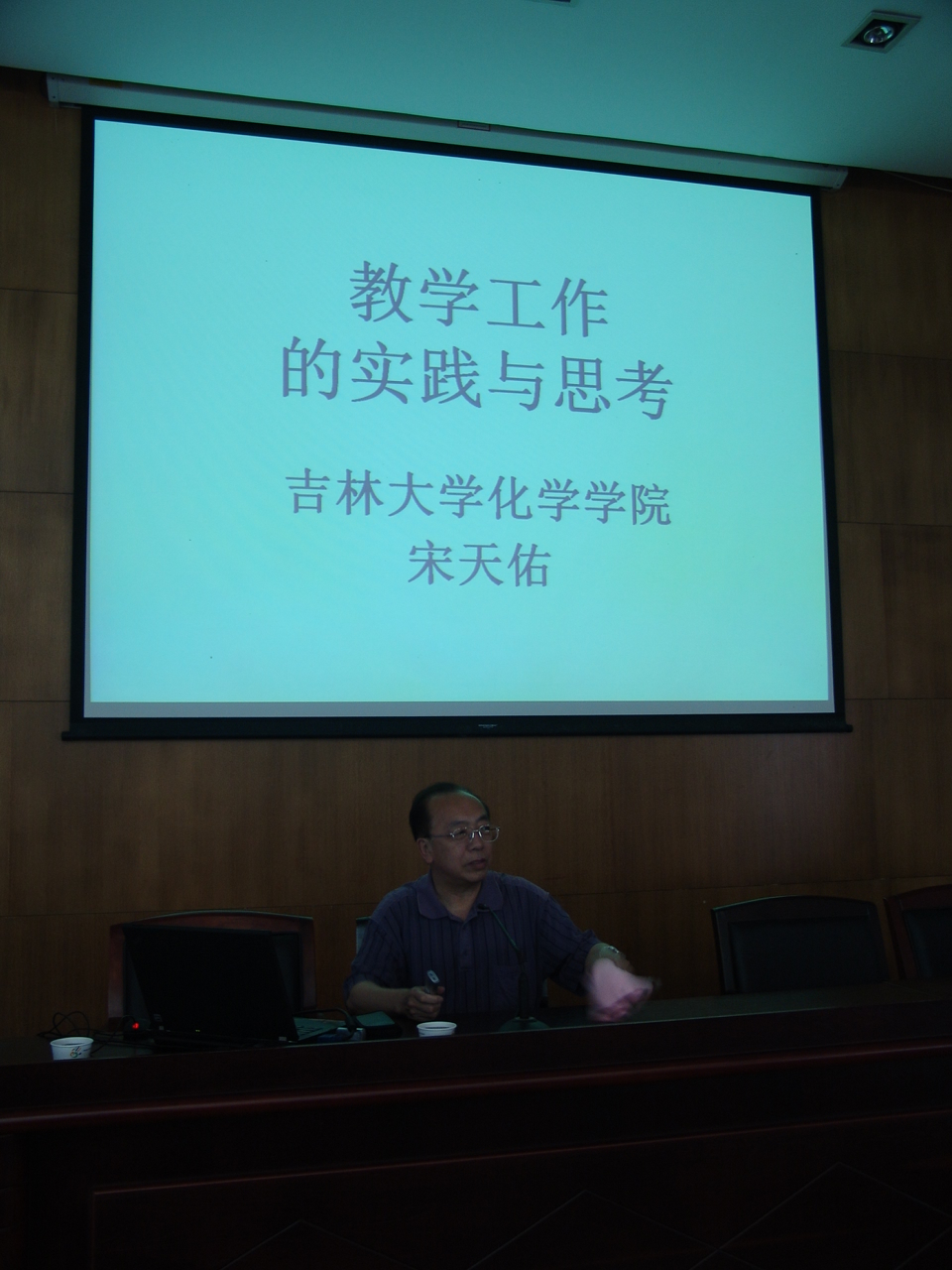 宋天佑教授简介:吉林大学化学学院教授,博士生导师,兼任教育部高等学校化学及化工学科教学指导委员会副主任委员,首届国家级教学名师奖获得者,全国模范教师。主讲的《无机化学》课程被评为首批国家级精品课程,2008年其领导的“化学专业教学团队”被评为国家级教学团队。曾获国家级教学成果二等奖、吉林省教学成果特等奖,编写了国家级规划教材《无机化学》、《简明无机化学》等。