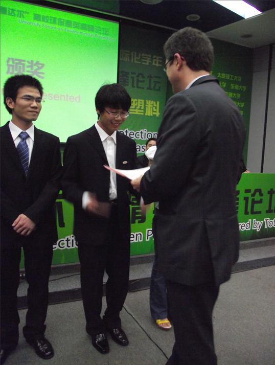 “2011国际化学年道达尔高校环保精英高峰论坛”由法国道达尔集团和华南理工大学联合主办,自今年4月1日启动以来,共有来自浙江大学、华中科技大学、哈尔滨工业大学、东南大学、大连理工大学等全国28所高校70余支队伍参加。据悉,5月20日,“湘塑”代表队在预赛中以第6名得成绩晋级决赛,在决赛之前他们不断完善作品,用创意和勤劳完善“PRSM”设计,最终实现梦想取得了优异的成绩。
