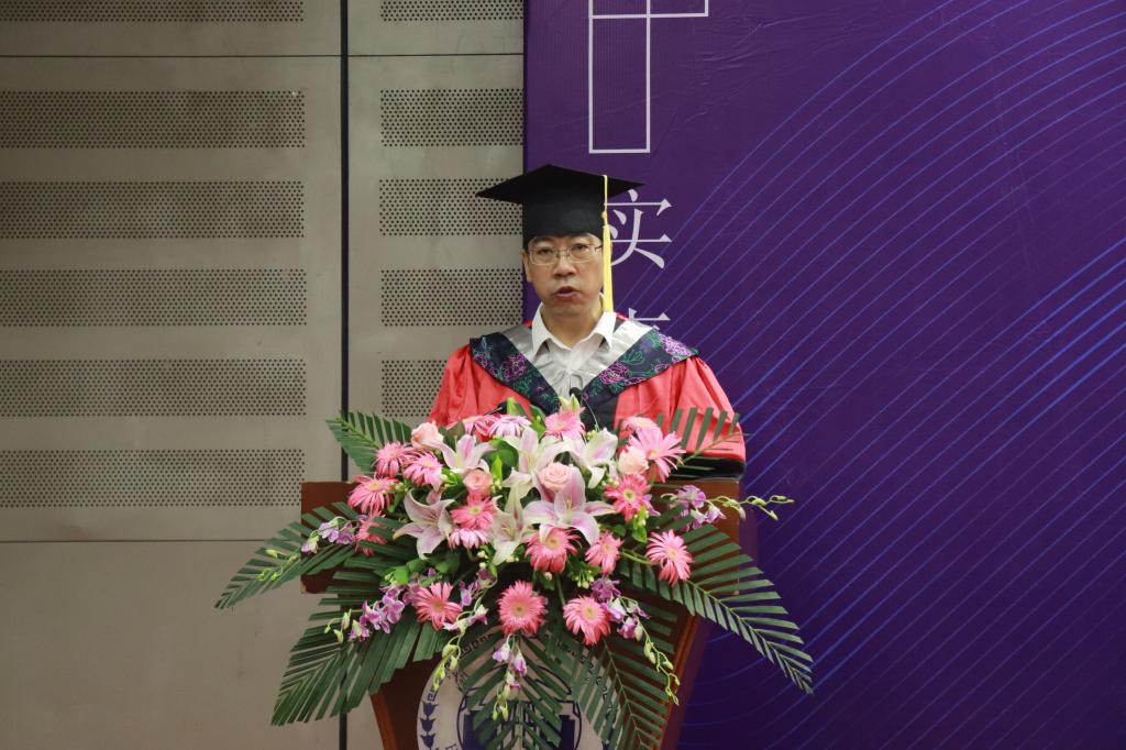 在热烈的掌声中,院长张晓兵教授以题为“生逢盛世,强国有我”致辞。他首先向2023届全体毕业生表示热烈的祝贺和衷心的祝福,对毕业生们在校期间取得的优秀成绩进行了回顾总结。值此毕业之际,张院长也向各位毕业生提出了三点期许:一是希望同学们涵养品德,大道不孤德有邻,同学们要自觉树立和践行社会主义核心价值观,始终恪守正道,锤炼品德修为;二是希望同学们终身学习,书山有路勤为径,将专业知识与社会发展需要相结合,以真抓实干续写化学化工的光荣与梦想;三是不忘初心,坚定不移跟党走,让青春在祖国和人民最需要的地方绽放绚烂之花。最后,张院长深情嘱托同学们以新时代青年力量诠释强国有我,用实际行动彰显青春担当!