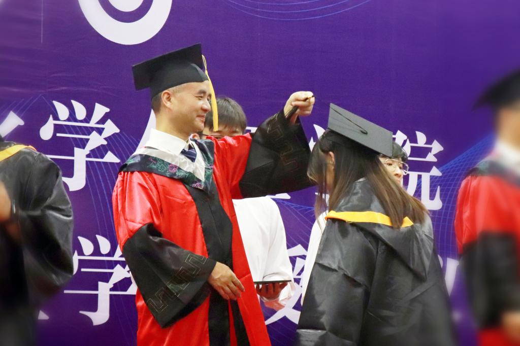 随后,副院长李永军教授宣读《关于2023届本科毕业生学士学位授予的决定》;副院长赵万祥教授宣读《关于2022-2023学年度博士、硕士学位授予的决定》。学位授予环节,毕业生们依次走上主席台,双手接过学位证书,主礼教授们为毕业生们拨转流苏、授予学位,为同学们在色情导航