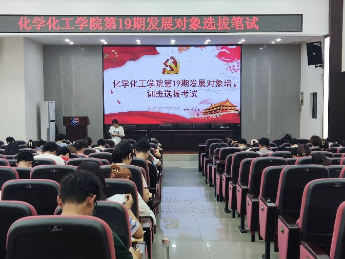 于2023年9月19日中午12点半在新化工楼D区报告厅组织开展了第19期发展对象培训班选拔笔试,101位本硕博学生参加了此次发展对象选拔笔试。