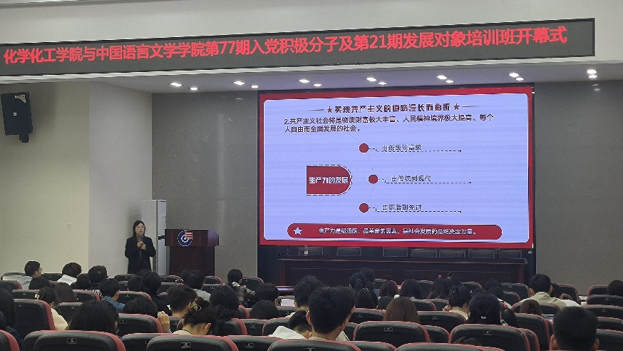 开班仪式:本期培训班由学院党委林仕琦老师主持,学院党委副书记李洪玉老师在致辞中强调了此次党课学习的重要性,激励学员们珍惜学习机会,全心投入到即将开始的理论学习中。随后,林仕琦老师宣读了培训班纪律,便拉开了本次培训的序幕。