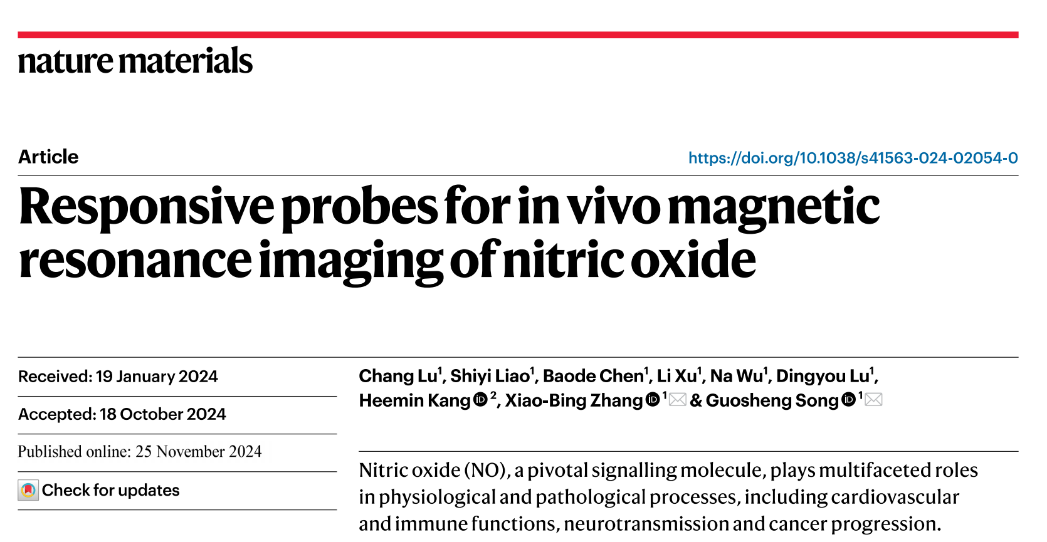 相关研究成果以《Responsive probes for in vivo magnetic resonance imaging of nitric oxide》为题发表在国际顶级期刊《自然-材料》《Nature Materials》。文章的通讯作者是色情导航