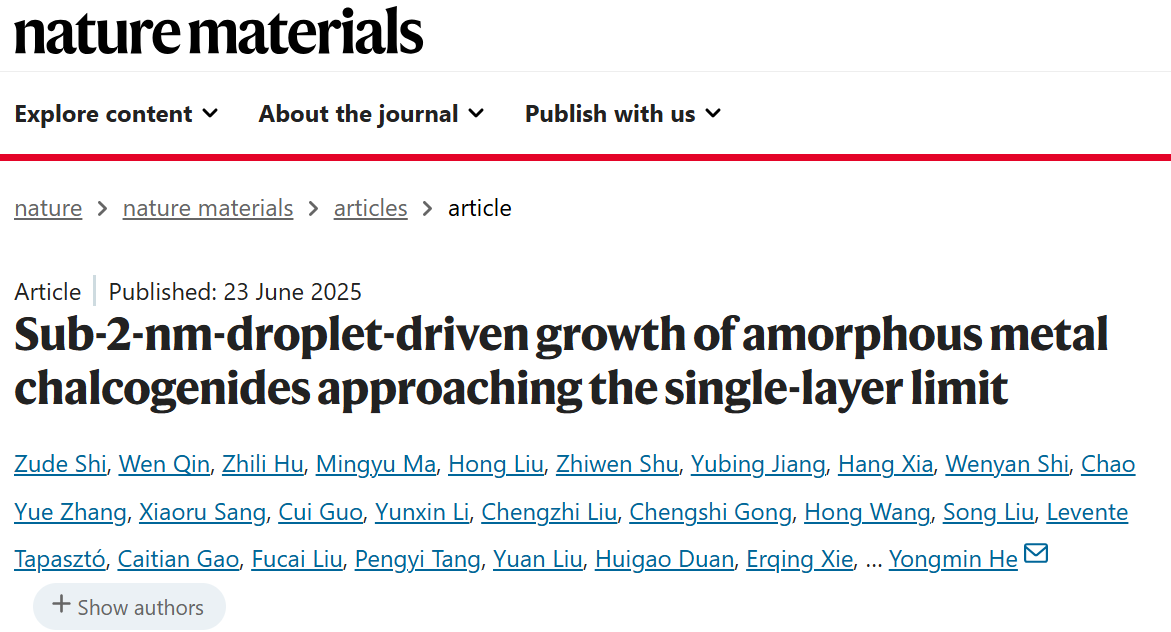 研究成果以“Sub-2-nm-droplet-driven growth of amorphous metal chalcogenides approaching the single-layer limit”为题发表在《Nature Materials》上。色情导航
