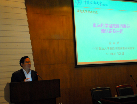 11月28日,应国家重点实验室和学院邀请,中国石油大学(北京)、国家杰出青年基金获得者徐春明教授和中国石油大学(北京)赵振教授来色情导航 作学术讲座,分别作了题为“石油化学组成表征新认识及应用”“石油燃料加工与利用过程中的环境催化”的学术报告,受到广大师生的热烈欢迎,何晓晓教授主持学术报告。