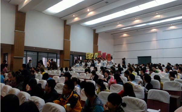 下午两点时许,在各年级辅导员到场之后,学生会第一副书记胡晨霞对此次会议的流程和评选规则作了简单的介绍,并宣布此次答辩会正式开始。各班团支部分别展示了他们团结协作、积极进取的一面,他们拿出了自己班所取得的各项荣誉,获得的各项奖学金,以及举办的受到了各级领导肯定的活动。各班展现的形式丰富多彩,内容积极向上,主题真挚感人。特别是第一个出场的10级化学本硕班,他们全班上阵,真切的表现了作为一个班级体应该有的团结凝聚力。