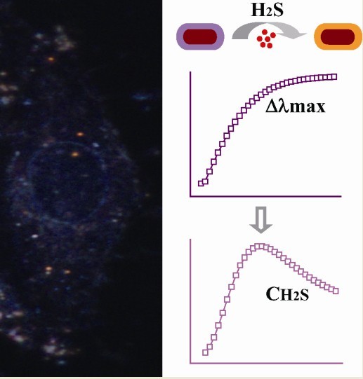 众所周知,细胞是生物体的结构和功能的基本单位,而在信号传导调控下的细胞内的新陈代谢是实现生命活动的根本机制。硫化氢是人体内一种重要的信号传导小分子,在包括血管的松弛、脑血管微循环、神经传递、炎症的产生、胰岛素的分泌调节、线粒体能量的产生等许多重要生理和病理过程中发挥着重要的作用。由于高浓度的硫化氢会产生较大的细胞毒性,因而在进行信号传导时细胞内会大量合成硫化氢,完成信号传导后硫化氢又会被迅速的代谢并恢复至较低的浓度水平。在单细胞水平上对细胞内源性硫化氢的浓度及其变化进行实时检测,对于硫化氢参与的信号传导机制的研究具有十分重要的意义。然而受制于细胞内环境的复杂性,现有的方法难以对细胞内硫化氢进行实时原位定量分析。