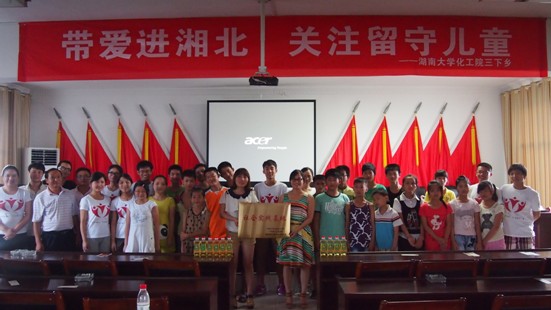 此后,“三下乡”队员与宣讲会参与人员合照留恋,并赠予其活动宣传书签与明信片。而宣讲会参与人员与湖大学子一对一的一的聊天,让“三下乡”队员深深了解到了月明潭乡现今教育及学习状况,发现了他们需要的帮助,严肃地给他们提出可靠的建议,并选拔出来后续活动的随行人员,分组并进行幸福的合照。