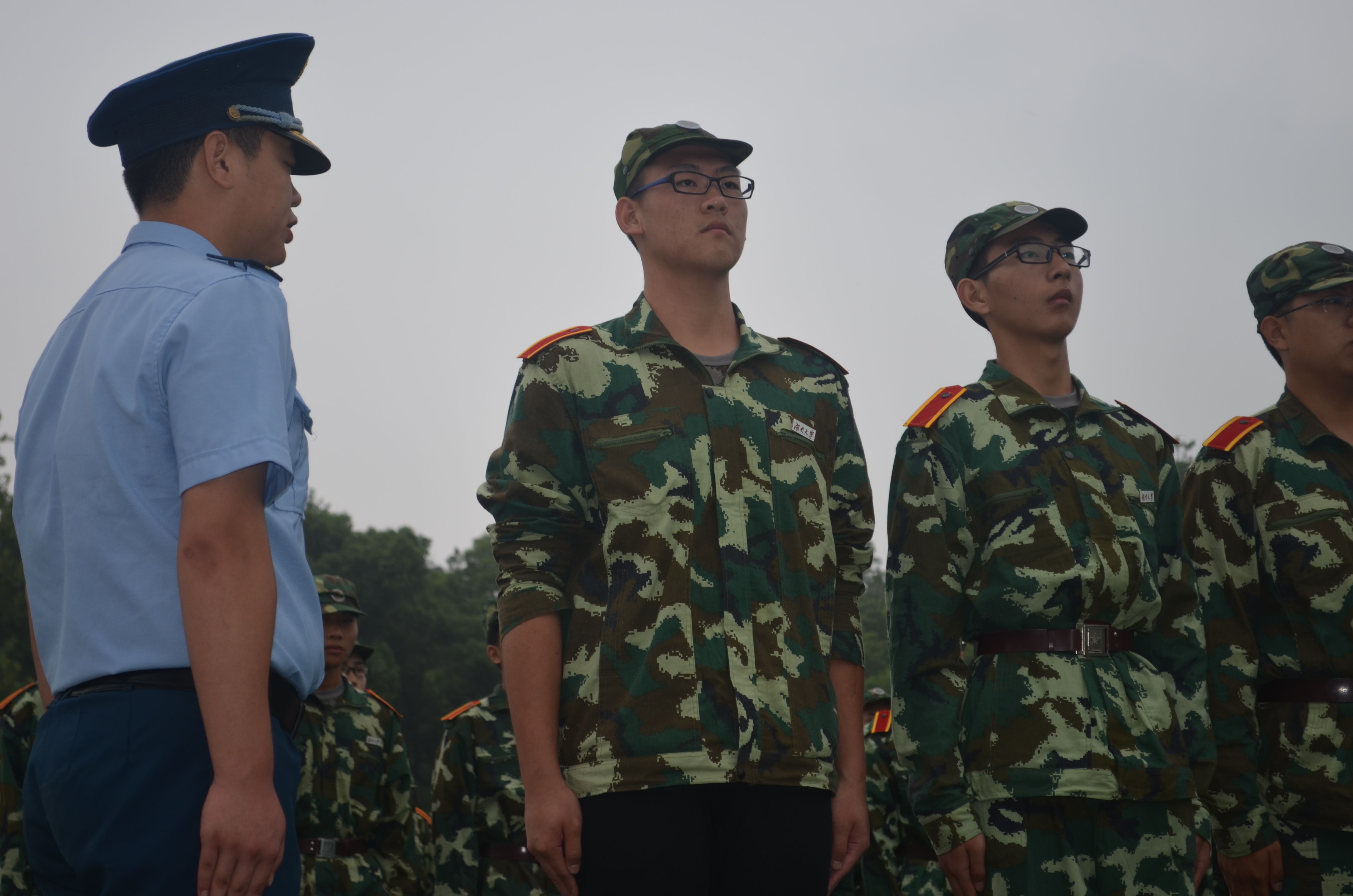 虽然没有烈日高照,但闷热的天气还是给军训工作带来了困难。有些学生明明身体弱,但还是坚持训练。上午出操时,一女生因为身体不适被教官要求出列休息,才几分钟,小姑娘又出现在了军训队列中,脸上略显倦意,却又在用事实告诉我们“巾帼不让须眉”。有些学生带病上阵,咬牙坚持着。“少年强则国强”,化工学子们正在用行动诠释着自尊自强。