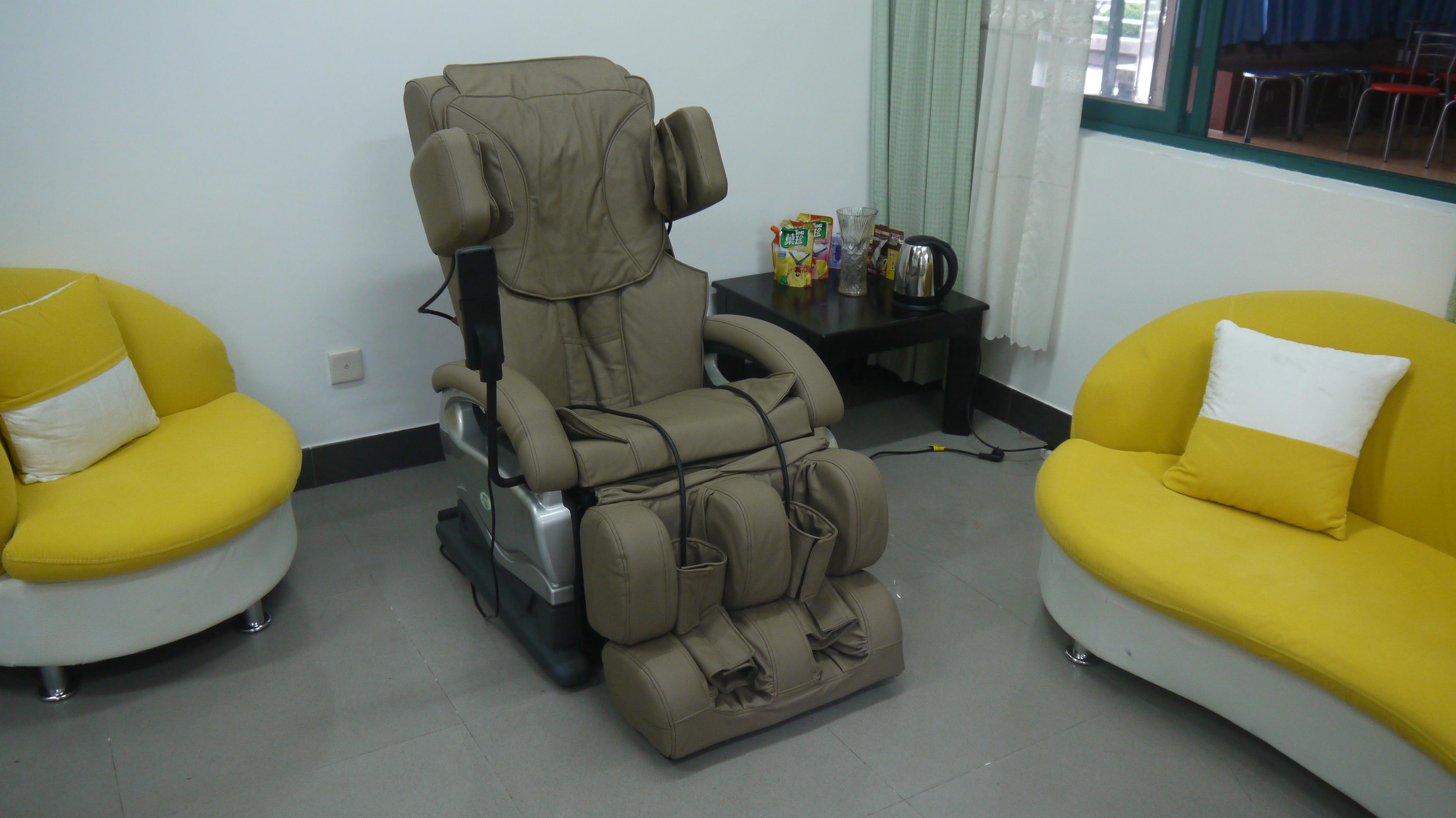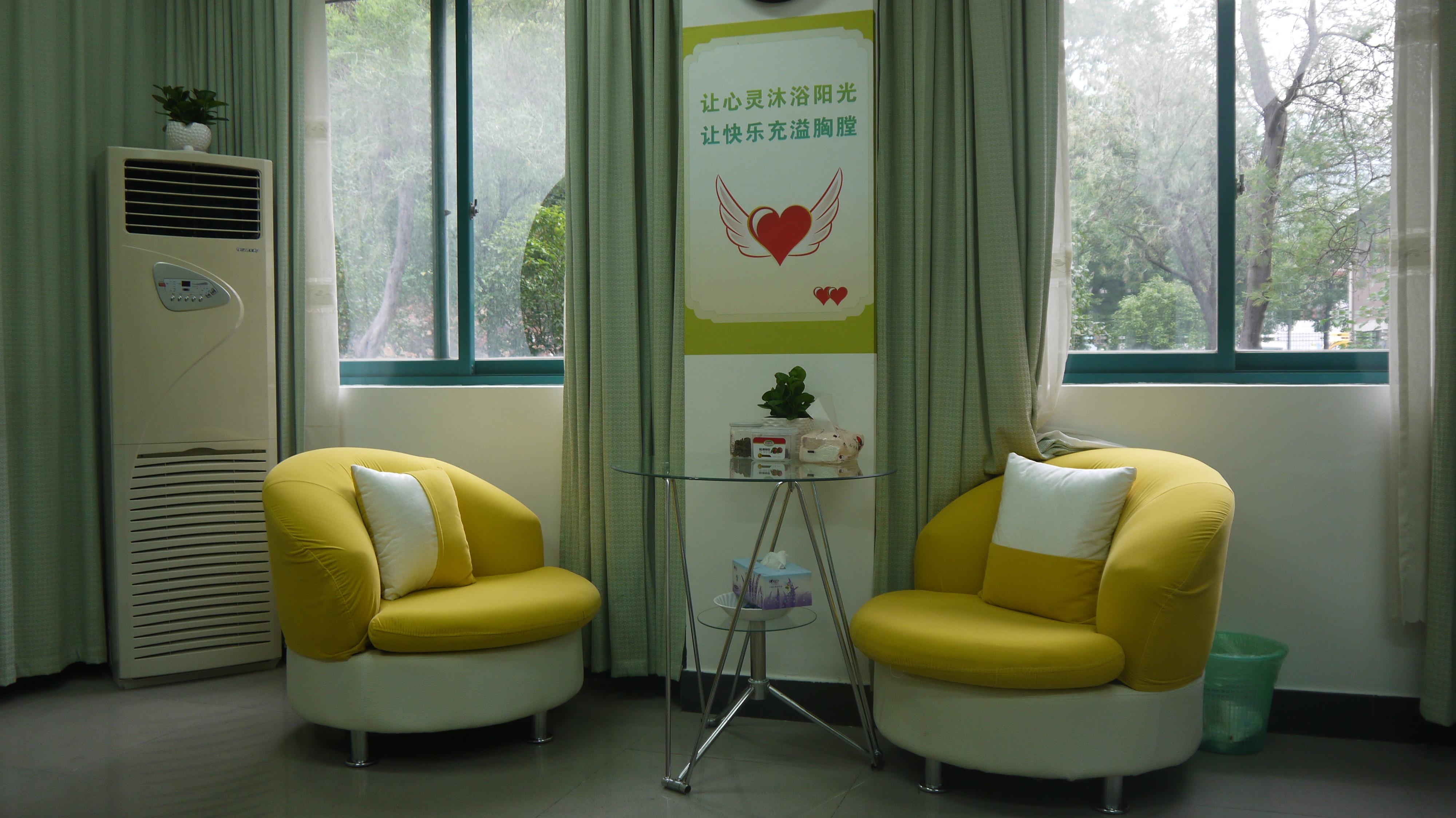 院楼D座304室,室内配备有专业沙发按摩椅、音乐反馈放松系统、各类心理图书、心理挂图、视听资料等成长辅导专用器材,一个屏风将室内分隔成两个区域:一边是成长辅导谈心专区,可以保证辅导老师和学生交心谈心的私密性;另一边是放松区,学生可以享受专业沙发按摩椅等专业设备带来的愉悦放松,也可以在这个区域查看一些成长辅导的专业技能,提升自己。