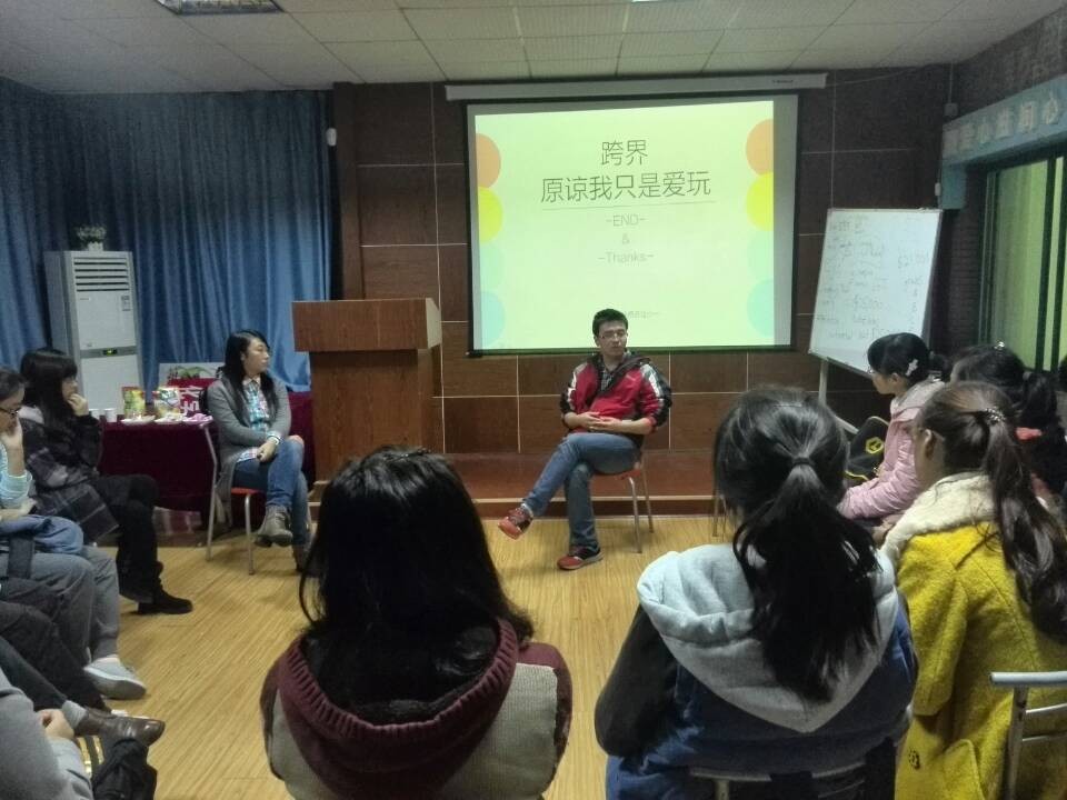 在开场主讲人的演讲中, 陈一讲述了自己丰富的经历和其中的心得体会,并为大家展示了一些自己精美的设计作品,引得同学们连连赞叹。她告诉大家,要找到自己的兴趣点,做自己喜欢的事一定是效率最高、最让人快乐的;要做一个长期的规划,坚持不懈的走下去,路的尽头一定会有你意想不到的礼物。而石亮学长讲述了自己从屡屡碰壁到今天处处开花的创业故事,强调了责任和真诚,并鼓励大家找到适合自己的然后勇敢去追求,有舍才有得。最后,他以两句话与大家共勉:“心有多大,舞台就有多大”,“不忘初心,放得始终”。在互动环节中,同学们的积极的提出自己所困惑的问题,陈一和石亮也热情的进行解答,大家进行了更为深入的探讨。