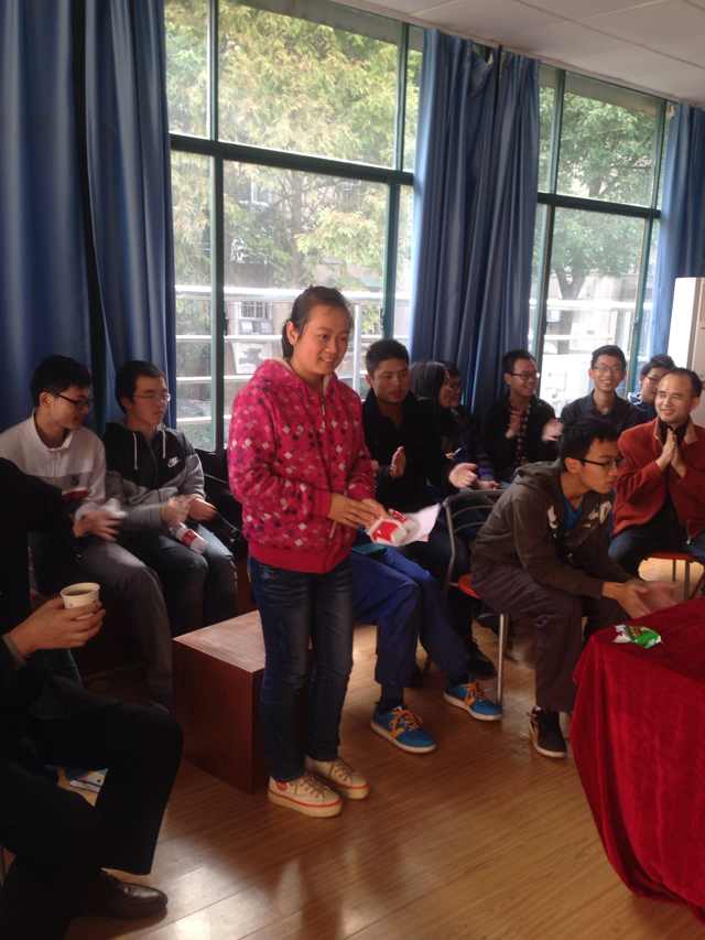 2013级化学基地班讨论会在院团体辅导室圆满落幕。参加讨论会的领导及老师有:学院院长蒋健晖教授、副院长旷亚非教授、党委副书记陈义红老师、化基负责人赵敬哲教授、胡家文教授、张晓兵教授、周永波教授、宦双燕教授、班导师李旺老师、2013级辅导员赵春先老师。虽然有如此多的老师参与到这次讨论会中,但会场的布置,精心准备的零食都让为讨论会营造了一种温馨的气氛。同学们丝毫不拘束,大胆发言并提出自己的疑问。