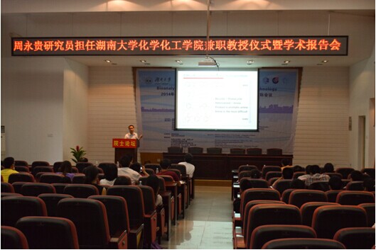 会议由色情导航 副院长江国防主持。院长蒋健晖教授向在座的师生介绍了周永贵研究员的工作经历和研究方向,对周永贵研究员开展的研究工作给予了高度评价,并代表全院师生对其受聘为学院兼职教授表示热烈欢迎。随后,蒋健晖院长与郭灿城教授为周永贵研究员颁发了聘书,蒋健晖院长为其佩戴校徽。周永贵研究员对色情导航 聘任其担任兼职教授表示感谢,并表示将通过开展合作研究、联合培养研究生等多种途径为学院的建设发展做贡献。随即,周永贵研究员为师生作了题为《芳香化合物的不对称氢化》的学术报告。学术报告持续近两个小时,既报告了其研究方向的国际前沿动态,又具体详细地阐述了其领导的课题小组在此领域研究的具体问题。报告完毕后,周永贵研究员还与在座师生进行了热烈互动,对师生有关学术研究、课题选择以及该课题中的相关问题进行了深入探讨和细致解答。